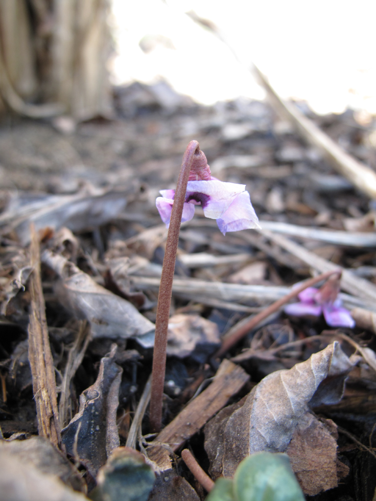 Och borta under ena körsbärsträdet har allt fler dvärgcyklamen slagit ut sina små blommor.