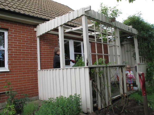 Före. 2010 påbörjades rivningen av den halvruttna verandan. Barnen hjälpte så klart till! Det är kul att slå hårt med en hammare och bända med en kofot!